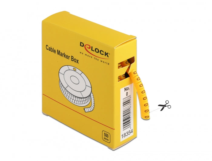 Delock 18354 Cable Marker Box, No. 0, Yellow, 500 Pieces