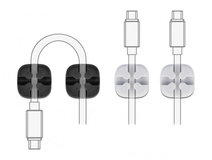 Delock 18405 Cable Holder Cross-Shaped Self-Adhesive 4 Pieces Black / Grey