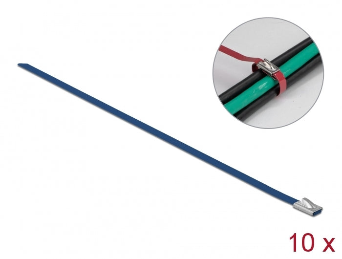 Delock 18794 Stainless Steel Cable Ties L 300 X W 4.6 Mm Blue 10 Pieces