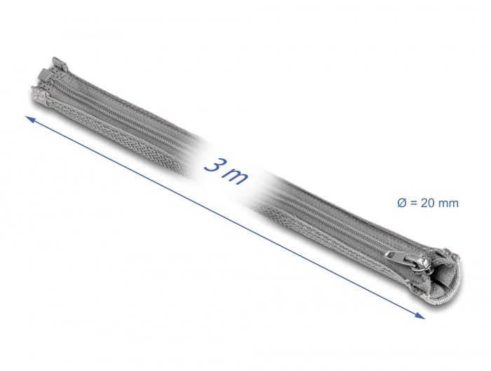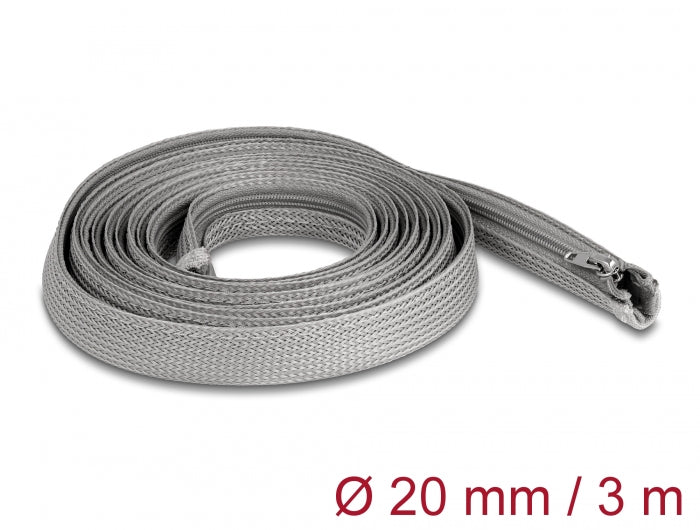 Delock 20836 Braided Sleeve With Zip Fastener Heat-Resistant 3 M X 20 Mm Grey