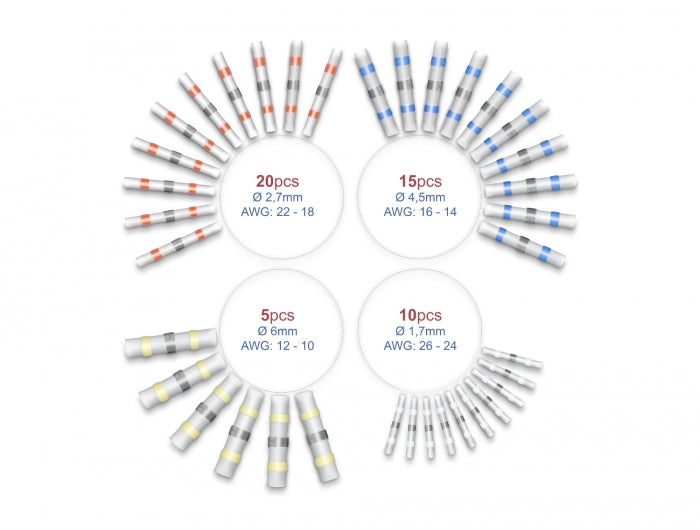 Delock 20850 Solder Wire Connectors Waterproof Set 50 Pieces 26 - 10 Awg