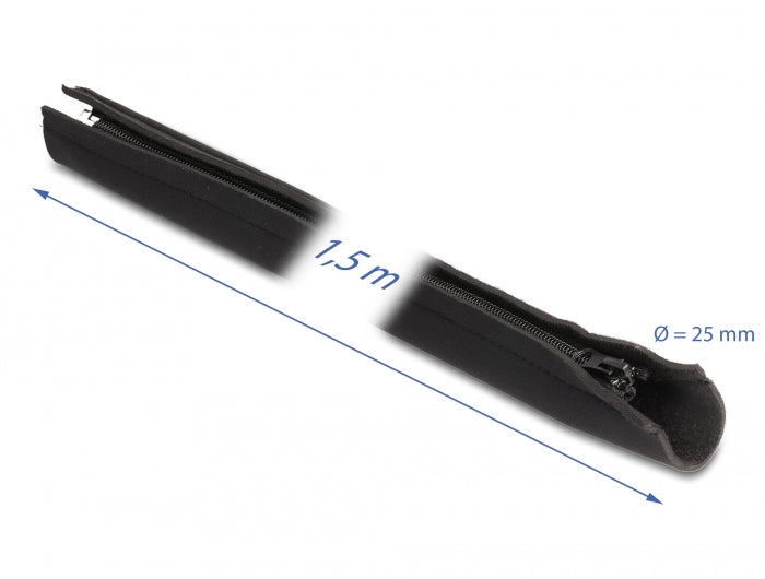 Delock 20913 Cable Sleeve Neoprene Flexible With Zip 1.5 M X 100 Mm Black