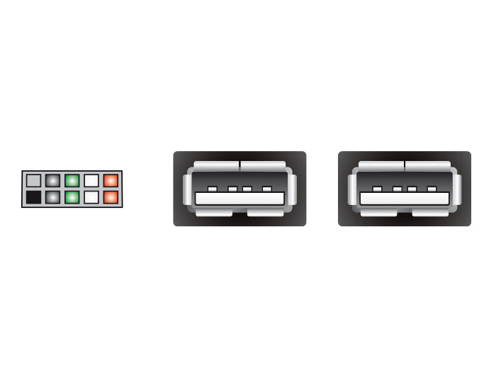 • Connector: 10 pin USB 2.0 pin header > 2 x USB 2.0 type A female
