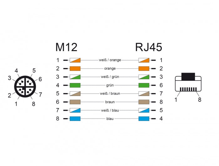Delock 85429 Network Cable M12 8 Pin X-Coded To Rj45 Hirose Plug Pur (Tpu) 1 M