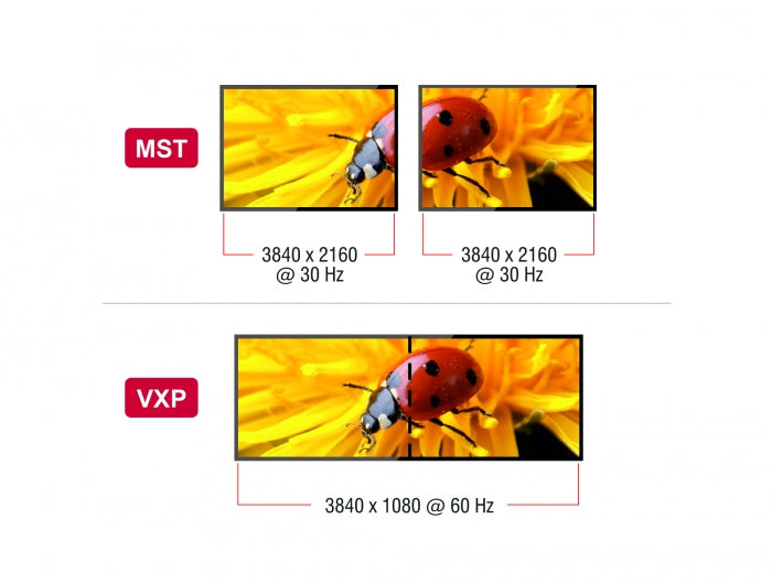 up to 3840 x 1080 @ 60 Hz (VXP)