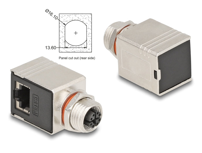 Delock 60088 M12 Adapter X-Coded 8 Pin Female To Rj45 Jack Cat.6A Stp Shielded
