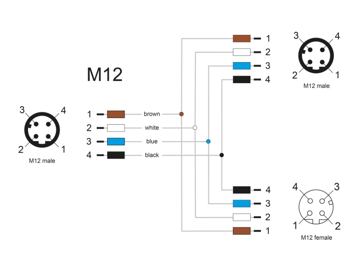 1 x M12 A-coded 4 pin male + 1 x M12 A-coded 4 pin female