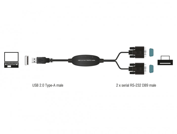 Delock 61886 Adapter Usb 2.0 Type-A > 2 X Serial Db9 Rs-232