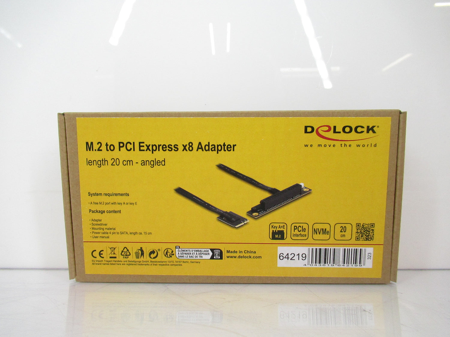 Delock 64219 M.2 Key A+E To Pcie X8 Nvme Adapter Angled With 20 Cm Cable is backordered and will ship as soon as it is back in stock.