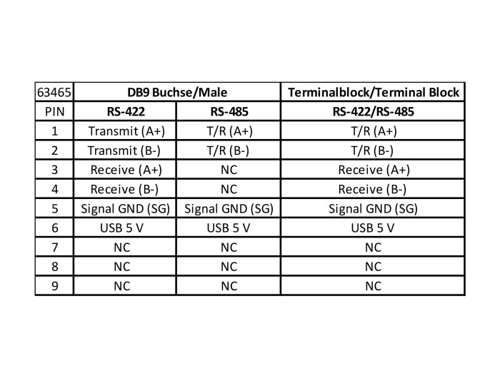 1 x serial RS-422/485 D-Sub 9 pin male with screws